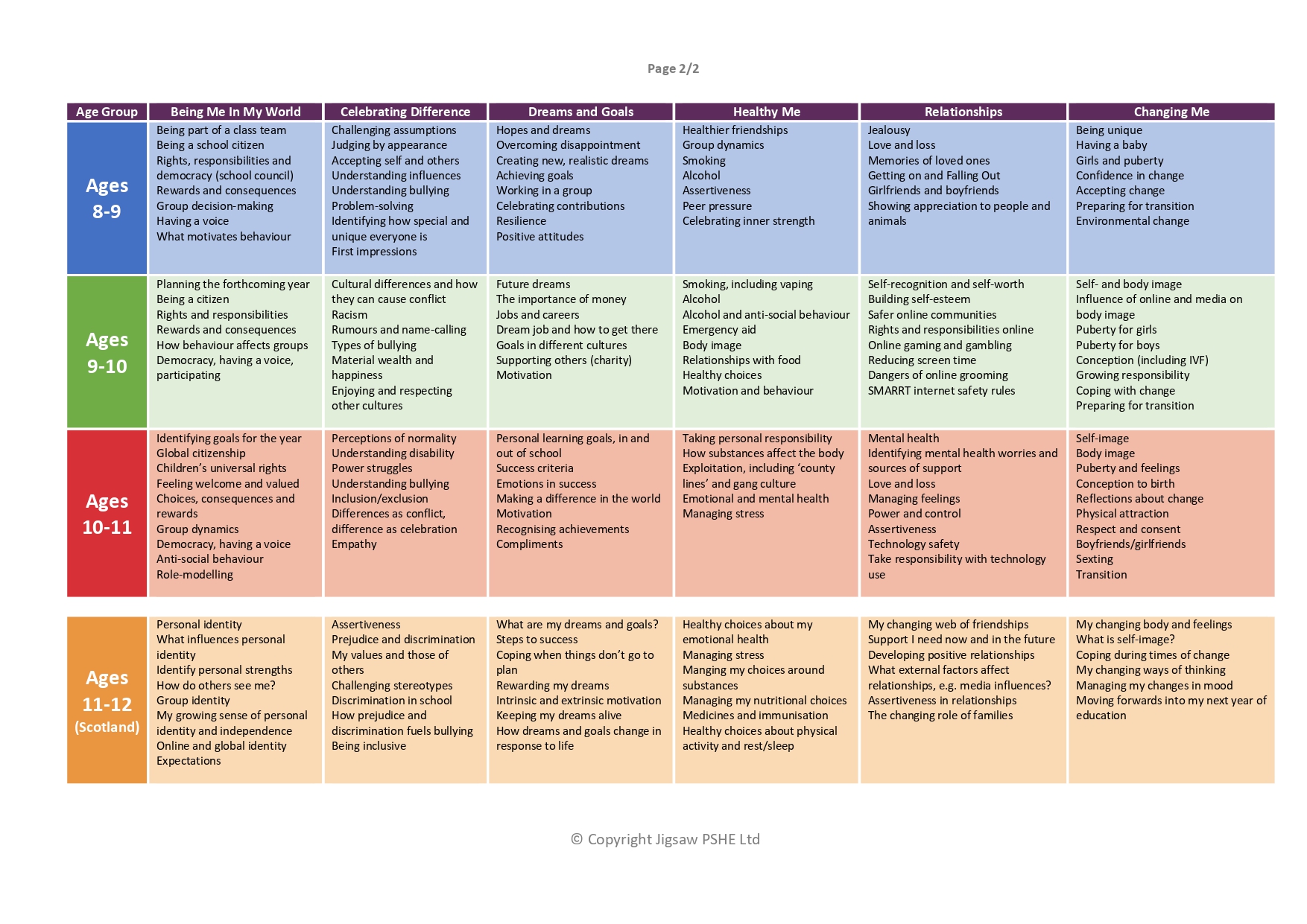The Jigsaw Programme meets all the outcomes in the PSHE Association Programmes of Study, 2017.