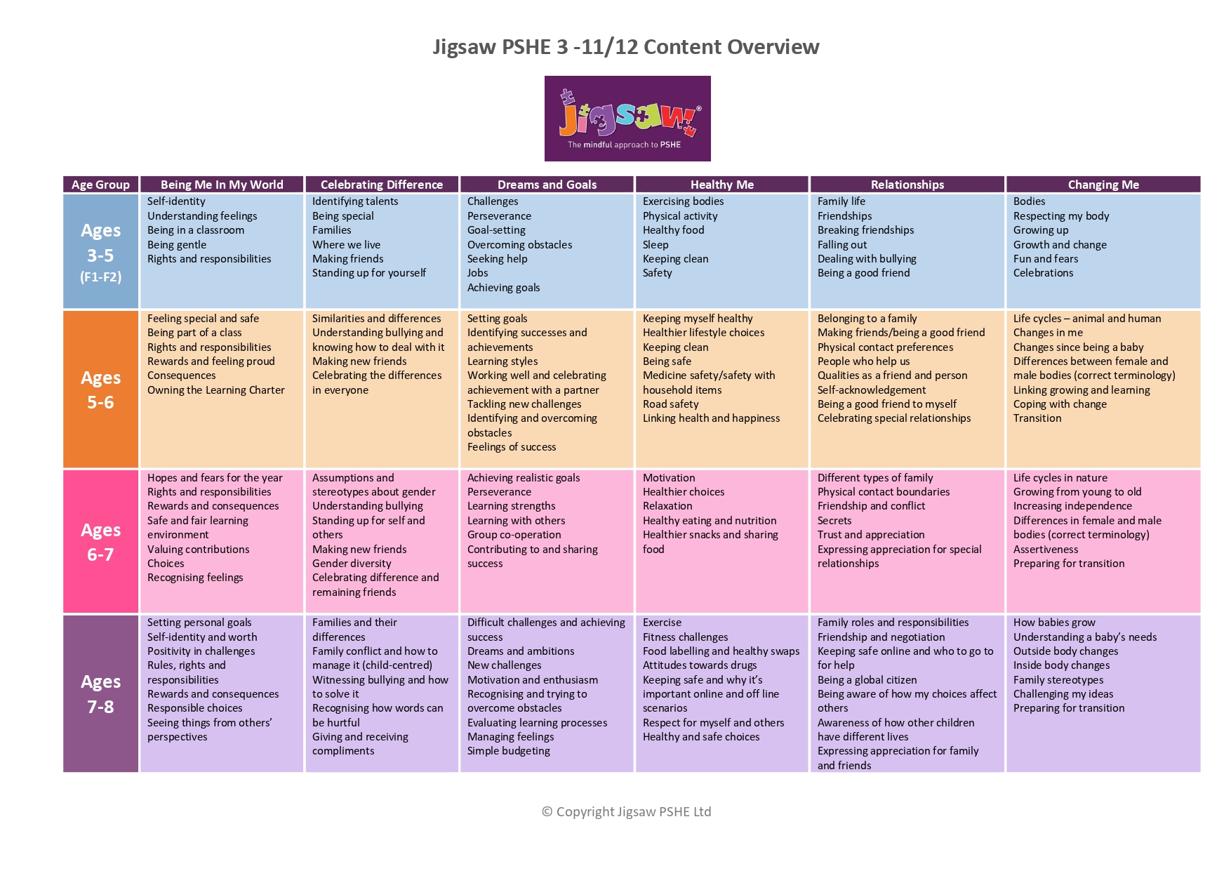 Jigsaw PSHE content overview